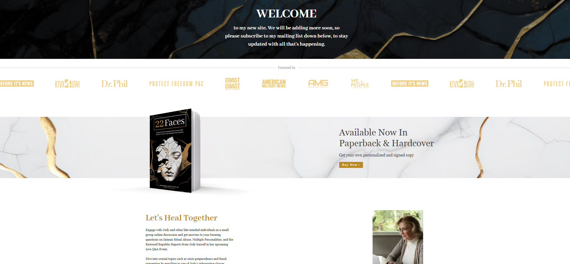 The only website you will find Judy Byington online is at my one and only website:www.judy-byington.com. Currently I have no social media accounts, including none of the twenty sites on Telegram that have been listed under my name and picture. In the future if I create a social media site in my name you will find it linked in the footer of my above website. Any social media account presently under my name and/or picture has not been approved by me, I have had nothing to do with creating it’s content and it could be considered fraudulent.